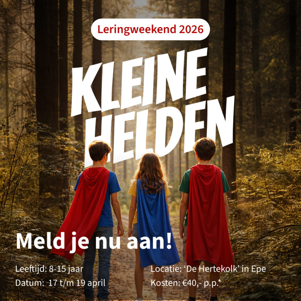 Dit jaar staat het Leringweekend in het teken van Kleine Helden. We ontdekken samen dat je geen superkrachten nodig hebt om een held te zijn. Wat maakt iemand een held? En wat zegt God daarover? Doe mee aan een weekend vol inspiratie, gezelligheid en creativiteit!