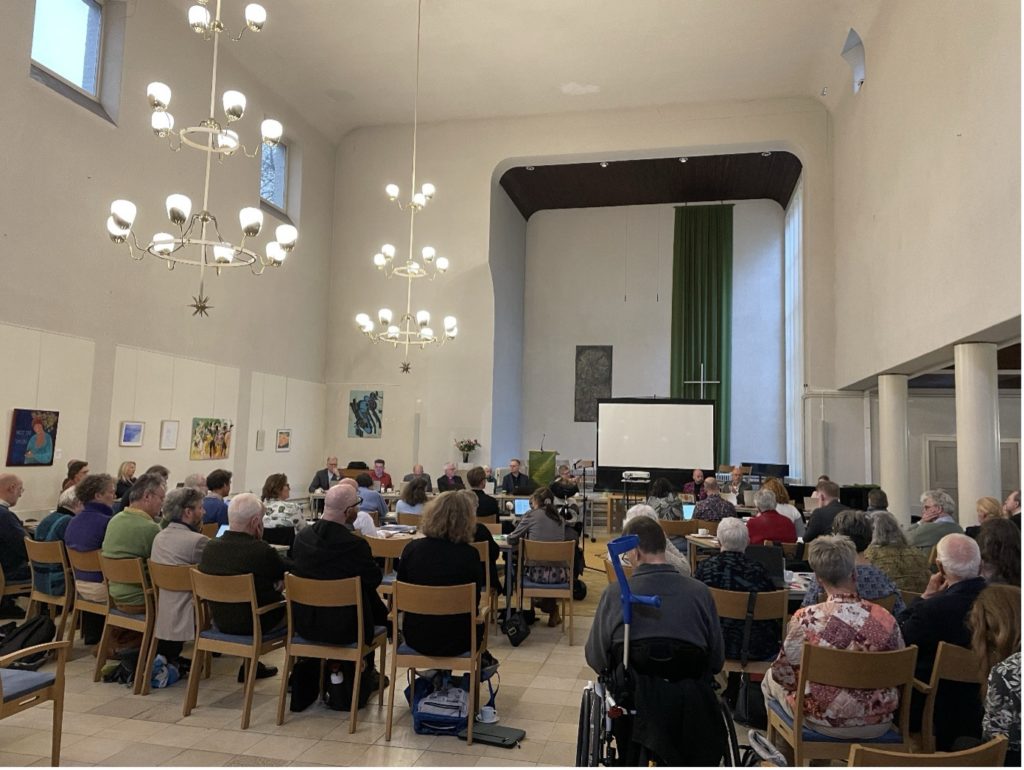 En dan zijn we bij het belangrijkste agendapunt. De herziening van de organisatie van de synode. Bisschop Dick Schoon vat het nog een keer samen. Het gaat om het gemeenschappelijk kerk zijn.