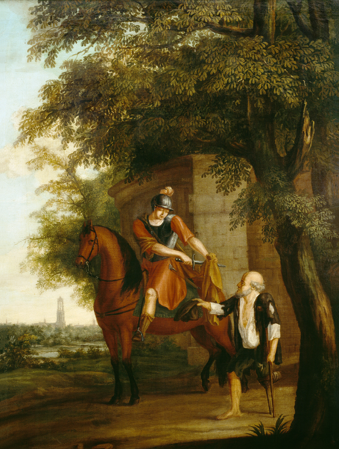Martinus, zo luidt de geschiedenis, was in 316/317 geboren als zoon van een Romeins officier en trad op 15 jarige leeftijd in dienst van het leger en diende in Gallië bij de keizerlijke garde. Uit die tijd stamt ook de ontmoeting met de bedelaar bij de stadspoort van Amiens, waar Martinus zijn mantel in twee stukken snijdt en een deel weggaf.