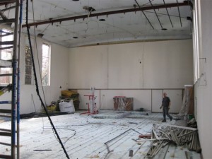 Op dinsdag 14 april is de verbouwing van het kerkplafond, ook wel bekend als het “gymplafond”, van start gegaan. Overdag is door een paar gemeenteleden de kerk leeg gehaald. In de avonduren werd door enkele andere KERN-leden een handje geholpen en zijn o.a. de muurlampen verwijderd, het altaar en het orgel afgekleed met plastic, de glas-in-loodramen zorgvuldig beschermd en door enkele dapperen de armenturen en de bijbehorende tl-buizen uit het plafond verwijderd. Nadat de lamellen van het plafond zijn verwijderd zal langzaam maar zeker de opbouw van het nieuwe “toogplafond” ter hand worden genomen.