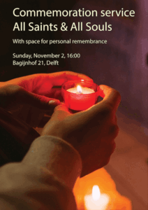 In de parochie Utrecht kun je op zondag 2 november terecht van 14.00-16.30 voor een ‘bakkie troost’, nadat je een kaarsje hebt gebrand voor een dierbare overledene. In Delft is er op 2 november om 16.00 een Engelstalige Commemoration Service All Saints & All Souls, met ruimte voor persoonlijk gedenken.