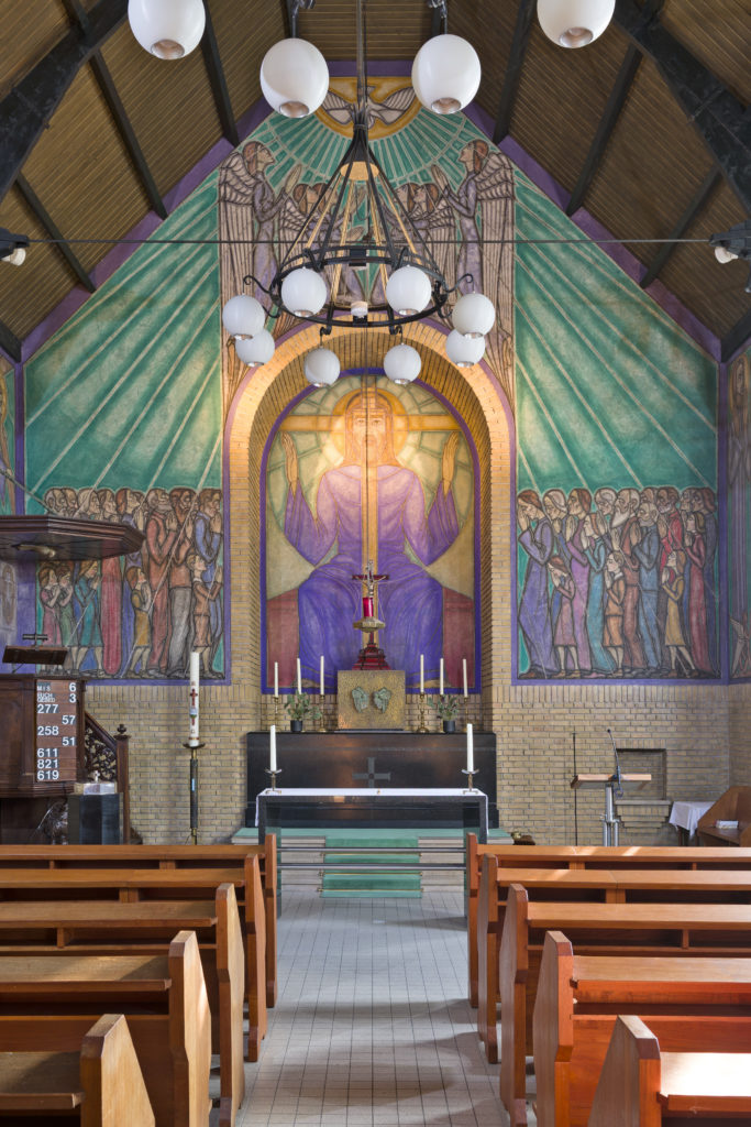 De oudkatholieke kerk in Leiden, gebouwd in chaletstijl, heeft prachtige muurschilderingen van Chris Lebeau (1875-1945) die inmiddels bijna een eeuw oud zijn en veel bezoekers trekken. Lebeau noemde zichzelf een ‘religieuze anarcho-communist ’en gaf in de schilderingen zijn eigenzinnige visie op religie.