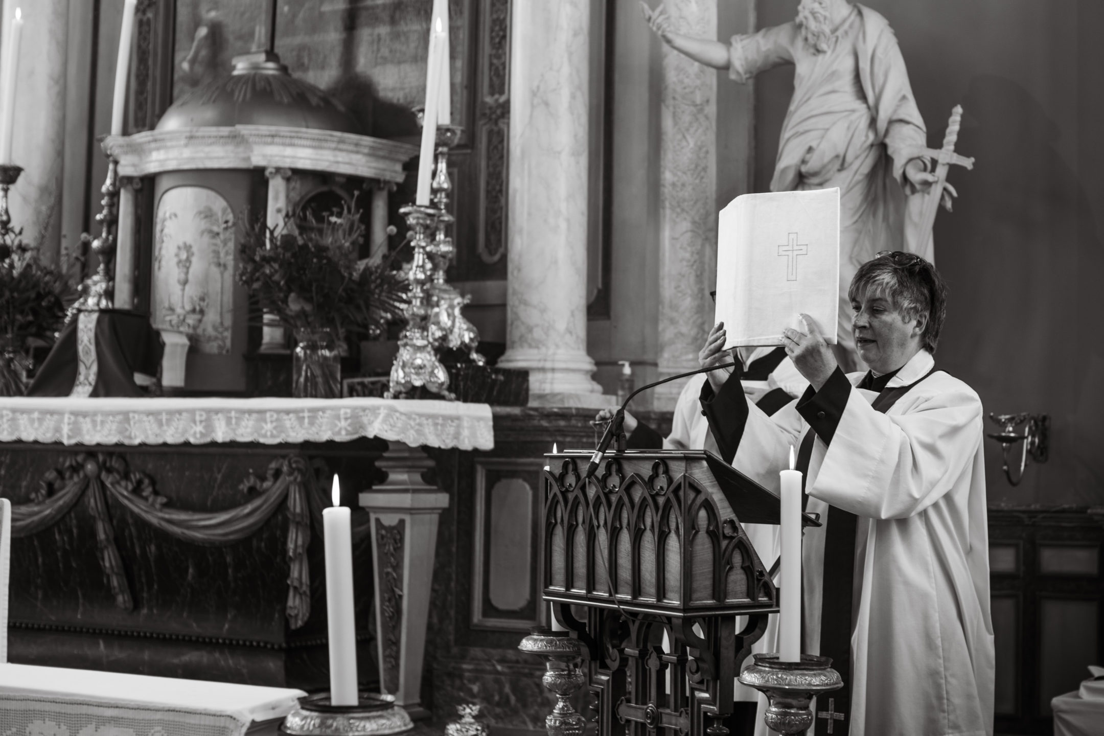 De derde lezing, die uit het Evangelie, krijgt tijdens de viering bijzondere aandacht. De lezing wordt ingeleid met een gezongen halleluja bij de psalmverzen en de diaken of priester kan het boek bewieroken. De lezing zelf wordt ingeleid met de dialoog tussen voorganger en gemeente: “De Heer zij met u” – “En met uw geest” – “Lezing uit het heilig Evangelie naar de beschrijving van …” en afgesloten met een acclamatie, meestal “U komt de lof toe, U het gezang…”. Bij dit laatste kan de diaken of priester het boek met de schriftlezingen optillen en als het ware de gemeente nog voorhouden, zoals de foto laat zien. Dat is niet zozeer om de gemeente te vermanen om het gehoorde ook serieus te nemen en er gevolg aan te geven in het persoonlijke en maatschappelijke leven. Het optillen van het boek is bedoeld als eerbetoon aan God, die zijn Woord tot ons spreekt en die in zijn Zoon als mens ons bestaan is komen delen.