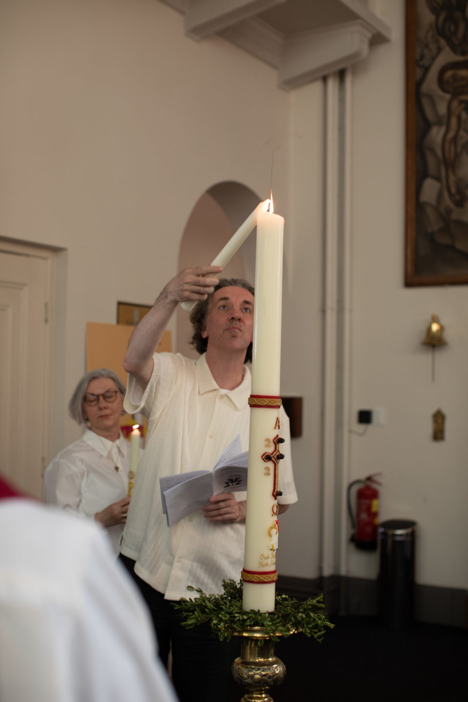 Paaskaars Zo is er in veel kerken aan godslamp, die duidt op Gods blijvende aanwezigheid in onze wereld. Heel bijzonder is de Paaskaars die in de paasnacht wordt ontstoken. In die nacht viert de gemeente haar deelname aan de bevrijdingsgeschiedenis van de Heer God met zijn volk, die uitmondt in de opstanding van Christus Jezus uit de dood. De Paaskaars die in de donkerheid van de nacht wordt ontstoken staat symbool voor Christus die de dood overwint. Hij brandt gedurende de gehele paastijd tot Pinksteren en bij gelegenheden waarin de verrijzenis van Christus in het persoonlijke leven wordt gevierd. In het delen in het licht van Christus krijgen wij zelf deel aan Zijn opstanding en het leven in Gods heerlijkheid. Vandaar dat iemand die gedoopt wordt een doopkaars krijgt die aan het licht van de paaskaars wordt ontstoken. Als iemand het vormsel gaat ontvangen ter bevestiging van de doop, dan doet hij of zij datzelfde. En als de gemeente een overleden broeder of zuster uitvaart, brandt ook die kaars als symbool van eeuwig leven.